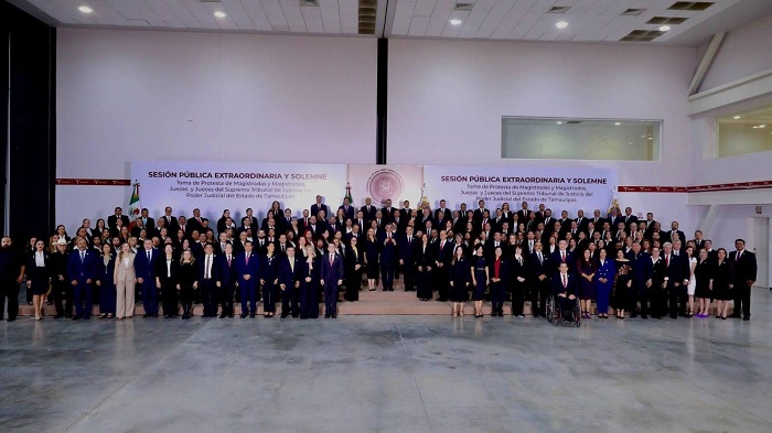 CIUDAD VICTORIA, Tamaulipas. - Al rendir protesta a los nuevos integrantes del Poder Judicial de Tamaulipas, democratizado, el presidente del Congreso Local ponderó la transformación que superó vicios históricos y reivindicó al pueblo como origen y destino del trabajo de las personas juzgadoras. “Cuentan con el respeto de este Congreso y con nuestro compromiso de trabajar juntos por una justicia moderna, transparente y eficaz”, ofreció el diputado Humberto Prieto Herrera a los 147 jueces, juezas, magistrados y magistradas, encabezados por la presidenta del Supremo Tribunal de Justicia electa, Tania Contreras López.