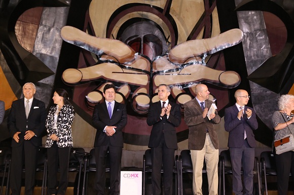 Ciudad de México.- Para su restauración, mantenimiento, promoción y conservación, el Polyforum contará a partir de ahora con un Fidecomiso que permitirá la recuperación integral del edificio y de los murales de David Alfaro Siqueiros, así lo anunció hoy el Jefe de Gobierno de la Ciudad de México, Miguel Ángel Mancera Espinosa, el cual administrará dos fondos: el primero de 30 millones de pesos para iniciar las tareas de restauración; el segundo de 12 millones de pesos anuales que permita la operación, mantenimiento, promoción y conservación, para que este recinto siga siendo un espacio cultural emblemático. “Estamos hablando de una conservación total, de restaurar este foro artístico que tiene una distribución circular muy particular al estilo griego, que nos invita a observar varias obras de teatro y las manifestaciones artísticas más importantes”, destacó. “Presentamos lo que será esta una nueva imagen, y por supuesto, un rescate garantizado por el GCDMX, la UNAM, INBA, y por la parte más importante, que es la sociedad civil”, detalló. El mandatario capitalino firmó como testigo de honor el acuerdo para la creación del Fideicomiso Irrevocable de Administración del Polyforum Cultural Siqueiros, el cual surge como resultado del trabajo entre el Gobierno de la Ciudad de México y la Familia Suárez; contará con un Comité Técnico que administrará los fondos y supervisará el cumplimiento de los fines de dicho instrumento. “Hay que recordar que es propiedad privada, al crear este Fideicomiso hacemos que la figura jurídica lo convierta en un bien de interés público, eso nos permite tener acciones mucho más contundentes y más consistentes para su rescate y garantía siempre”, agregó.