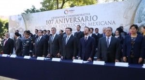 Puebla, Puebla.- El gobernador Tony Gali encabezó la ceremonia conmemorativa del 107 Aniversario del inicio de la Revolución Mexicana, que se llevó a cabo en el monumento a Francisco I. Madero, en la capital.