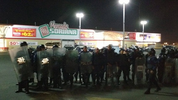 A las 21:00 horas granaderos arribaron al centro comercial Soriana de la colonia Bosques de San Sebastián para resguardarlo de los saqueadores despiadados, sin embargo, minutos antes saquearon una casa de empeño, oxxo´s, Famarcias, tiendas de abarrotes y misceláneas. Otro grupo de formación policiaca se movió para Xonacatepec, mientras que otros más recibieron indicaciones para resguardar otro lugar.