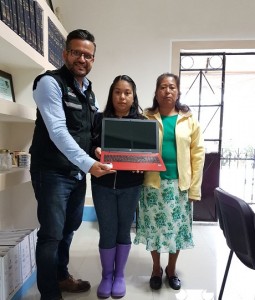 Xicotepec, Puebla.- Con apoyo del Presidente Municipal de Xicotepec, Juan Carlos Valderrábano Vázquez, a través del Secretario General del H. Ayuntamiento 2014-2018, Andrés Ramos Fosado, la joven Rosa María Cruz Arroyo logró adquirir su nueva laptop, indispensable para continuar sus estudios en la Universidad Tecnológica de Xicotepec de Juárez, (UTXJ), donde lleva un promedio de 9.5.