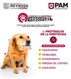 El Gobierno que preside el alcalde Carlos Peña Ortiz, brinda apoyo a los animales de compañía por lo cual hace el llamado para proteger a sus mascotas y evitar utilizar pirotecnia, debido a que aunado al daño que genera a los animales puede ocasionar desde lesiones hasta incendios.