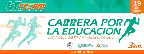 Tecamachalco, Puebla.- La Universidad Tecnológica de Tecamachalco, a cargo del Ingeniero Raúl Álvarez Marín, Rector de la institución, con motivo del XXV Aniversario de las Universidades Tecnológicas y el XX Aniversario de la UTTECAM, invita a la comunidad universitaria y al público en general a participar en la Carrera por la Educación que se llevará a cabo el próximo domingo 19 de junio del 2016.