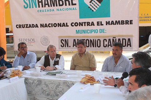 San Antonio Cañada,Puebla  a 11 de julio de 2013 .- Con la finalidad de tener un acercamiento con los presidentes municipales de las demarcaciones integradas en la Cruzada Nacional contra el Hambre, se llevó a cabo la reunión intersectorial que presidieron el coordinador de Delegaciones de la Sedesol, Pedro de León Mojarro, el Delegado de SEDESOL en Puebla, Juan Manuel Vega Rayet, el Delegado de SAGARPA, Alberto Jiménez Merino.
