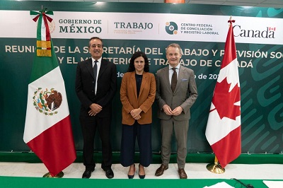 Ciudad de México. - En el marco del fortalecimiento de los lazos de cooperación bilateral que unen a México y Canadá, se realizó un encuentro entre las autoridades laborales de ambos países, con la participación de Luisa María Alcalde, secretaria del Trabajo y Previsión Social del Gobierno de México; Seamus O’Regan, Ministro del Trabajo de Canadá; y Alfredo Domínguez Marrufo, titular del Centro Federal Laboral.