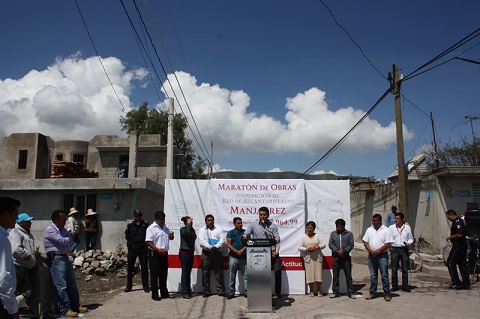 Quecholac, Puebla.- Beneficiando a cientos de familias, el Presidente Municipal de Quecholac, Néstor Camarillo Medina concluyó el Maratón de Inicios de Obra con el banderazo de arranque a 2 obras más en la localidad de Manjarrez.
