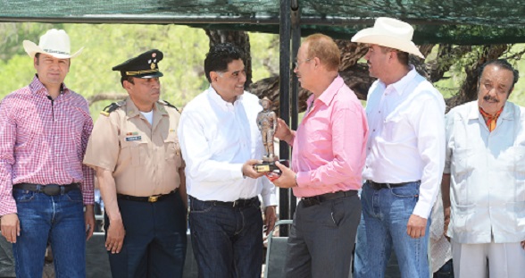 San Juan del Rio, Dgo.- El Gobernador Jorge Herrera Caldera, acompañado de Pedro Ávila Nevárez, presidente del Frente Revolucionario Adolfo López Mateos y los alcaldes de San Juan del Rio y Durango, José Rolando Villareal Vargas y Esteban Villegas Villarreal, conmemoraron el 136 Aniversario del Natalicio del general Francisco Villa, en la Cayotada, donde además de ofrecer una ofrenda floral al caudillo de la Revolución, entregaron reconocimientos a ciudadanos que han trabajado en beneficio de esta comunidad.