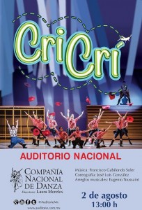Con una sola fecha, el 2 de Agosto estarán en escena más de 70 bailarines para rendir homenaje a la obra de Cri-Crí en uno de los recintos más importantes del país. Esta puesta en escena ya se había presentado en el Auditorio en 2008 y el éxito fue rotundo, así que seguramente volverá a abarrotar el lugar.