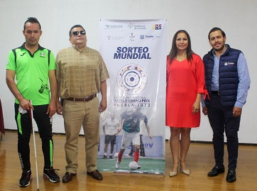 Puebla, Pue.- Al destacar que el turismo deportivo suma a la reactivación económica de la entidad, la directora general del Instituto Poblano del Deporte (INPODE), Yadira Lira Navarro encabezó el sorteo del Gran Prix Mundial de Futbol IBSA Puebla 2022, para definir los grupos y encuentros que iniciarán este próximo 2 de agosto en la cancha de los Topos de Puebla.