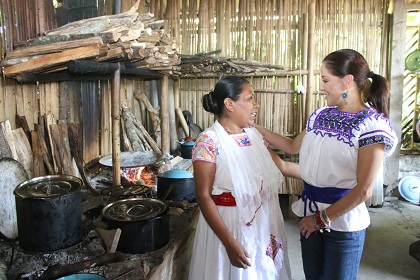 López de Gali recorrió los municipios de Cuetzalan y Hueyapan para conocer el trabajo de las mujeres que se han organizado para conservar sus tradiciones y elaborar artesanías que se comercializan dentro y fuera del país.