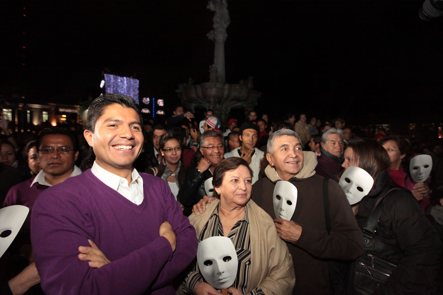 El Presidente Municipal de Puebla, Eduardo Rivera Pérez presenció el espectáculo en el zócalo
