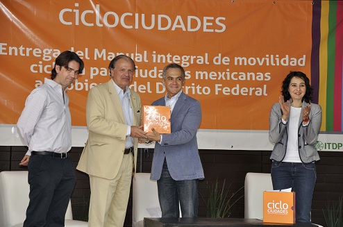 El Jefe de Gobierno del Distrito Federal recibió de manos del Embajador de los Países Bajos en México, Dolf Hogewoning, el Manual de Ciclociudades, compendio de 6 tomos que contiene la experiencia holandesa en el tema del uso de la bicicleta y que le es entregado al Gobierno de la ciudad como una herramienta de carácter práctico para avanzar en el diseño de nuevas políticas.