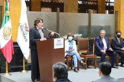 Estuvieron presentes: la encargada de la Dirección General de Memoria Histórica de México del Archivo General de la Nación (AGN), Gabriela Pulido Llano; y el director corporativo de Administración y Finanzas de Correos de México, Rafael Freyre Martínez.