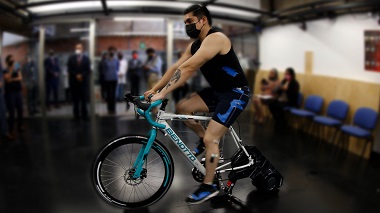 Para evaluar las capacidades corporales y adaptar la bici a las necesidades de cada persona, en la IBERO empleamos la tecnología de punta de nuestro moderno Laboratorio de Análisis de Movimiento, dotado con: un electromiógrafo de superficie, para el análisis de la actividad muscular; un sistema biomecánico Vicon, que con sus 12 cámaras infrarrojas ve cómo se lleva a cabo el movimiento articular; así como plataformas de fuerza y equipo para realizar pruebas de esfuerzo.