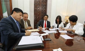 Durango, Dgo.- El Gobernador Jorge Herrera Caldera y las dirigencias magisteriales de las secciones 12, 44 y 35 del SNTE, firmaron la iniciativa para la armonización de las leyes secundarias de la Reforma Educativa, con el fin de que esta sea la fuerza transformadora de México.