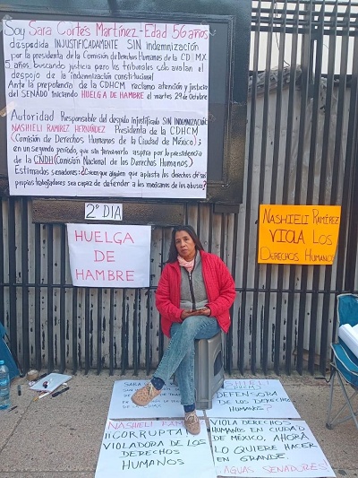 CIUDAD DE MÉXICO. - En la búsqueda del reconocimiento efectivo de un derecho juzgado y cansada de no obtener justicia laboral en los tribunales (el Tribunal Federal de Conciliación y Arbitraje y la Suprema Corte de Justicia de la Nación) al ser despedida injustificadamente por la Comisión de Derechos Humanos de la Ciudad de México, en diciembre del 2019; Sara Cortés Martínez, ex trabajadora de esa institución, decidió pedir la intervención del Senado de la República, iniciando en sus instalaciones una Huelga de Hambre el próximo martes 29 de octubre.