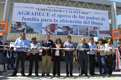 Posteriormente acudió a la escuela primaria “Emperador Cuauhtémoc” para inaugurar el domo de la plaza cívica y donar un centenar de sillas para eventos especiales.