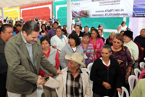 Chignahuapan, Pue.- Detonar la oferta turística que posee la Sierra Norte para generar riqueza y bienestar entre los habitantes, es el objetivo de obras como ésta, afirmó el Gobernador Rafael Moreno Valle al inaugurar la recuperación de la imagen urbana de este municipio, en la “Calzada de las Almas”, donde bajo el esquema Peso a Peso, gobierno estatal y ayuntamiento invirtieron 13 millones de pesos.