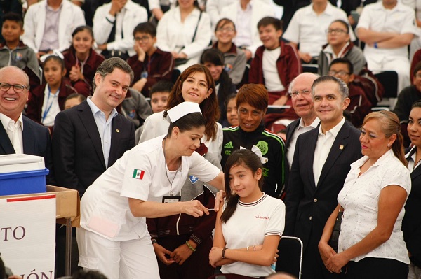 Ante alumnos de la Escuela Primaria “Revolución”, el mandatario capitalino indicó que el Gobierno de la CDMX puso en marcha un programa piloto en 2015 para la aplicación de la vacuna contra el virus del papiloma humano en niños.