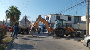 Peña instruyo a la Comisión Municipal de Agua Potable y Alcantarillado de Reynosa lleva a cabo maniobras de sondeo de línea general sobre calle Belice, esquina con bulevar Inglaterra, en la colonia La Cañada, como parte de los preparativos para iniciar los trabajos de rehabilitación del drenaje sanitario en este sector.
