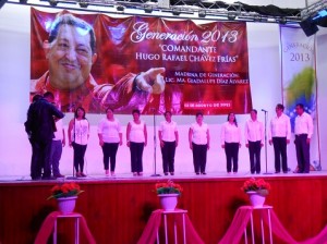 Los 21 graduados de la licenciatura en educación secundaria -bajo el nombre “Comandante Hugo Rafael Chávez Frías”, de los que 14 se especializaron en matemáticas y los demás en biología-, ofrecieron un banquete cultural para los asistentes.