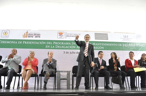 El Jefe de Gobierno del Distrito Federal, Miguel Ángel Mancera Espinosa, encabezó el Arranque del Programa Integral de Mantenimiento de Escuelas (PIME), con una inversión superior a los 30 millones de pesos para rehabilitar a alrededor de 58 planteles educativos en la delegación Álvaro Obregón.