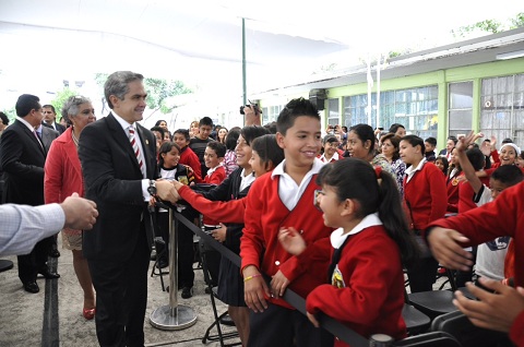 En la escuela primaria “Etiopía” y acompañado por el jefe delegacional en Álvaro Obregón, Leonel Luna y el Administrador Federal de Servicios Educativos en el DF por parte de la Secretaría de Educación Pública (SEP), Luis Ignacio Sánchez Gómez; el Mandatario Capitalino sostuvo que se mantendrán los esfuerzos para mejorar la infraestructura en el sistema educativo público.