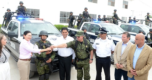Recursos por el orden de los 8 millones de pesos fueron entregados por el mandatario estatal y miembros del gabinete de seguridad, consistentes en patrullas, literas, traficonos y trafitambos, mismos que fueron entregados en las instalaciones del complejo de seguridad, (antiguo Cereso No.2).