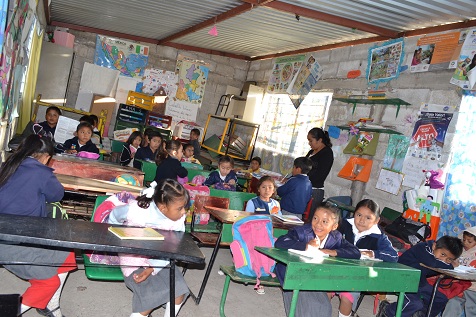 “Sólo tenemos 3 aulas para los seis grados. Los techos son de lámina, el piso de tierra y los muros sobrepuestos, lo que expone la integridad física de los alumnos”, dijo.