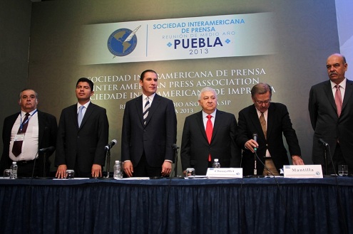 Cabe destacar que minutos antes, Chuayffet Chemor, en representación del Presidente de la República, Enrique Peña Nieto, expresó su discurso ante la SIP su satisfacción por estar en Puebla y su reconocimiento al actual gobierno en materia educativa.