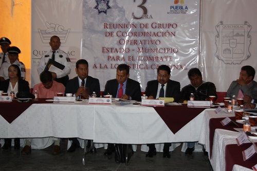 Quecholac, Puebla.- El Presidente Municipal de Quecholac, Néstor Camarillo Medina y el Secretario de Seguridad Pública del Estado, Facundo Rosas Rosas, encabezaron la IV Reunión del Grupo de Coordinación Preventiva Operativa contra la Logística Criminal, llevada a cabo en la ciudad de Quecholac, con la finalidad de mantener las reuniones para sumar esfuerzos de coordinación entre el Estado y los municipios en materia de Seguridad Pública.